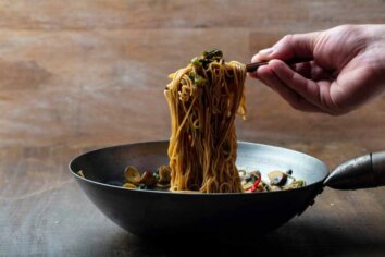 To change the flavour, the pasta may also be served with spinach sauce. To prepare it, bring 100ml of low-fat cream to the boil, add 100g of spinach leaves and let it boil for 2 minutes. Blend everything in a blender and add salt and pepper to taste.