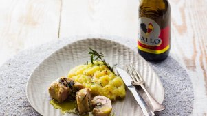 Finalice con perejil y sazone con sal, pimienta, Gallo Aceite de Oliva Virgen Extra Premium Gran Selección y Gallo Vinagre Balsámico de Módena. Envuelva bien.