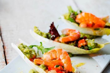 Sirva la crema en vasos con las brochetas de camarón. Para terminar, rocíe con Gallo Aceite de Oliva Virgen Extra Reserva.