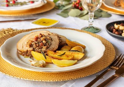 Ajoutez les pistaches. Recouvrir les rectangles de viande de dinde avec la pâte obtenue, les enrouler et la ficeler avec du fil de cuisson.