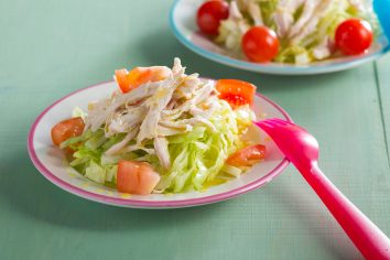 Corte as couves em fatias finas, a cenoura em palitos finos e as cebola em meias luas finas e coloque tudo numa saladeira.