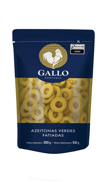 A Azeitona Gallo Verde Fatiada é cuidadosamente selecionada e cortada em fatias para a sua conveniência. Possui textura firme e sabor frutado e ligeiramente amargo.