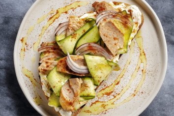 Sirva com a salada e finalize com mais um pouco de vinagre balsâmico branco Gallo.