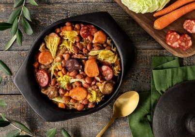A meio da cozedura, junte ao borrego os cogumelos e continue a cozinhar.