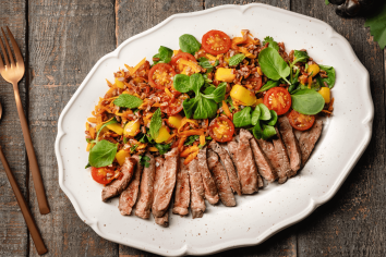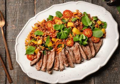 Retire a perna do forno, coloque numa travessa e decore a gosto com romãs e alecrim. Finalize com Azeite Gallo Aromatizado Alecrim.