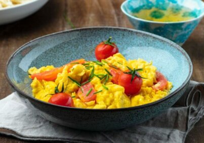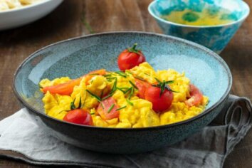 Then, add the codfish, the egg, the egg yolks and the minced parsley.