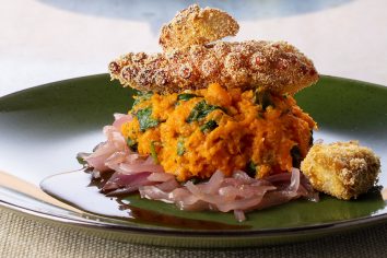 Serve the open papelote with the coriander sauce on top.