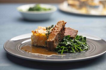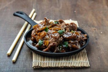 Serve the meat in the burger buns with the rocket, caramelised onion and a few drops of Piri Piri sauce to taste.